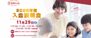 【2026・2027年度 入会説明会開催のお知らせ】 川崎市で民間英語学童をお探しの方へ―― 城南Kids After Schoolでは、「2026年度・2027年度入会説明会」を以下の日程で開催いたします。 今回の説明 […]
